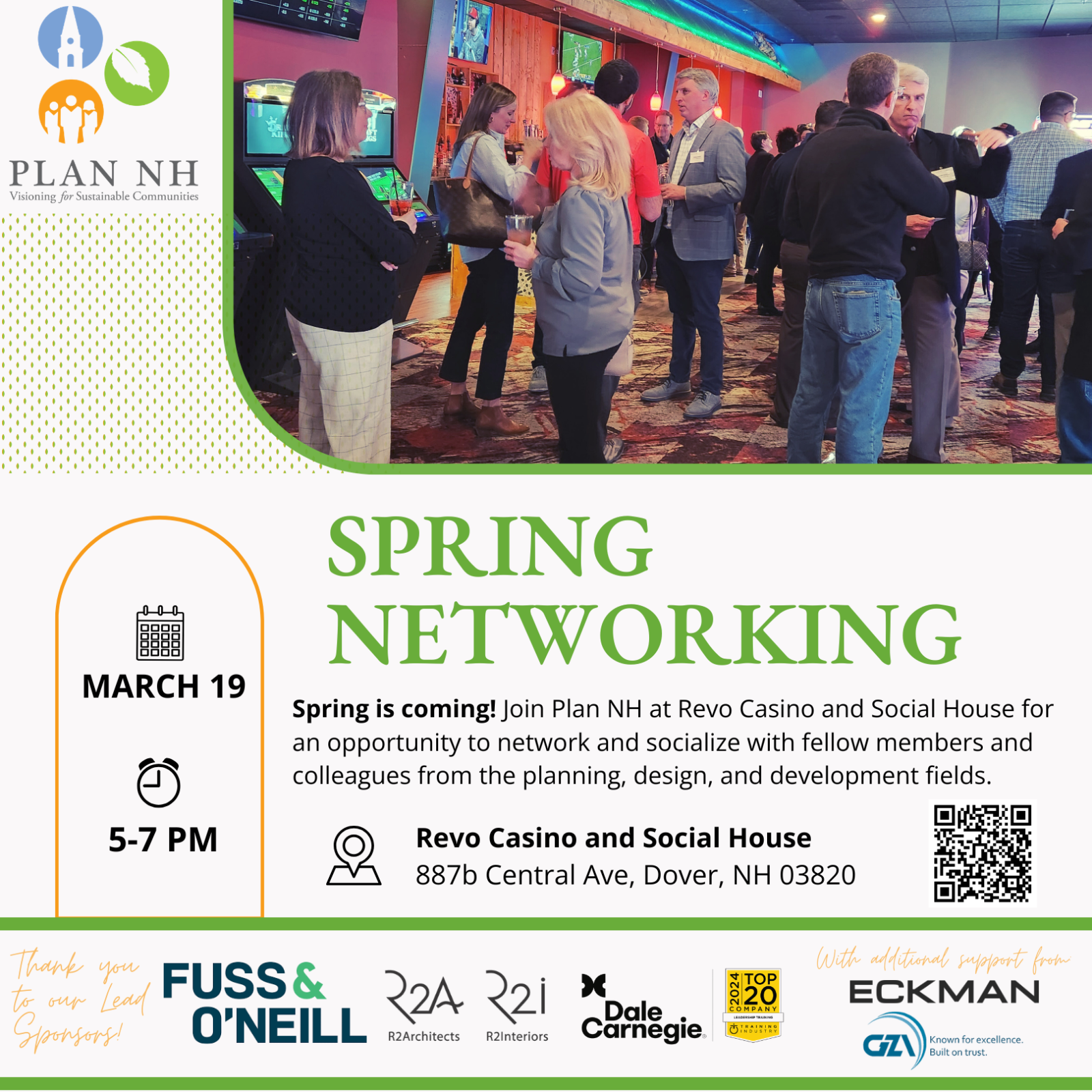 Join us Thursday, March 19 in Dover, NH from 5:00 - 7:00 PM at Revo Casino & Social House. Enjoy light refreshments and catch up with Plan NH members and other colleagues from the planning, design, and development fields.